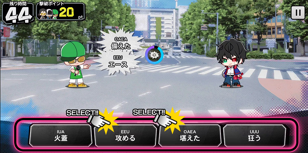 ★難易度「HARD」を選択すると、敵の出題に韻(例:OUA、EIO)が表示されなくなるなど、
